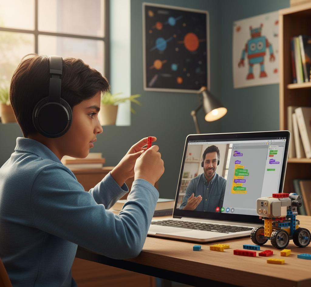 Para quem prefere aprender de qualquer lugar! Aulas interativas e dinâmicas com educadores especializados, onde o kit robótico é enviado para sua casa e a diversão não tem fronteiras.