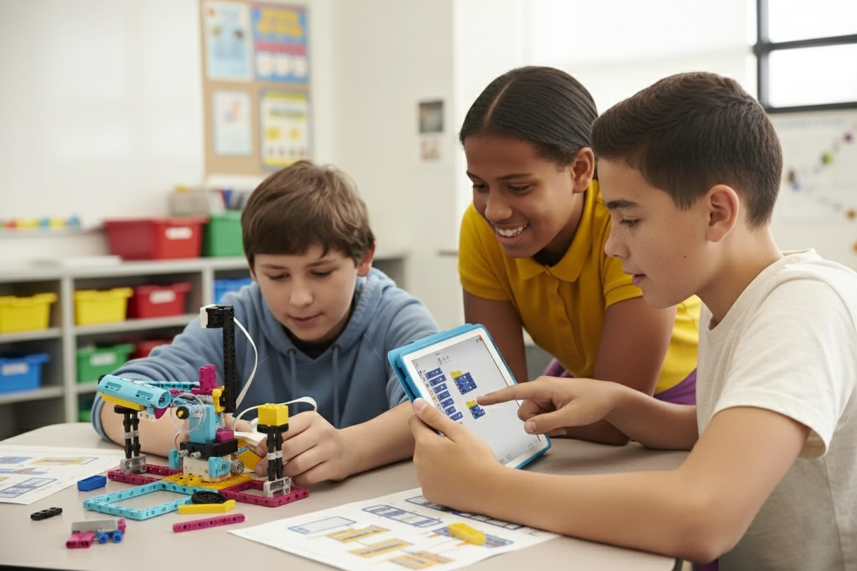 O curso Robótica Inventor é uma experiência prática pensada para despertar o gênio criativo das crianças. Mais do que montar robôs, os alunos são desafiados a transformar ideias em invenções usando kits tecnológicos — aprendendo lógica, programação visual e conceitos de engenharia enquanto desenvolvem trabalho em equipe e pensamento crítico.